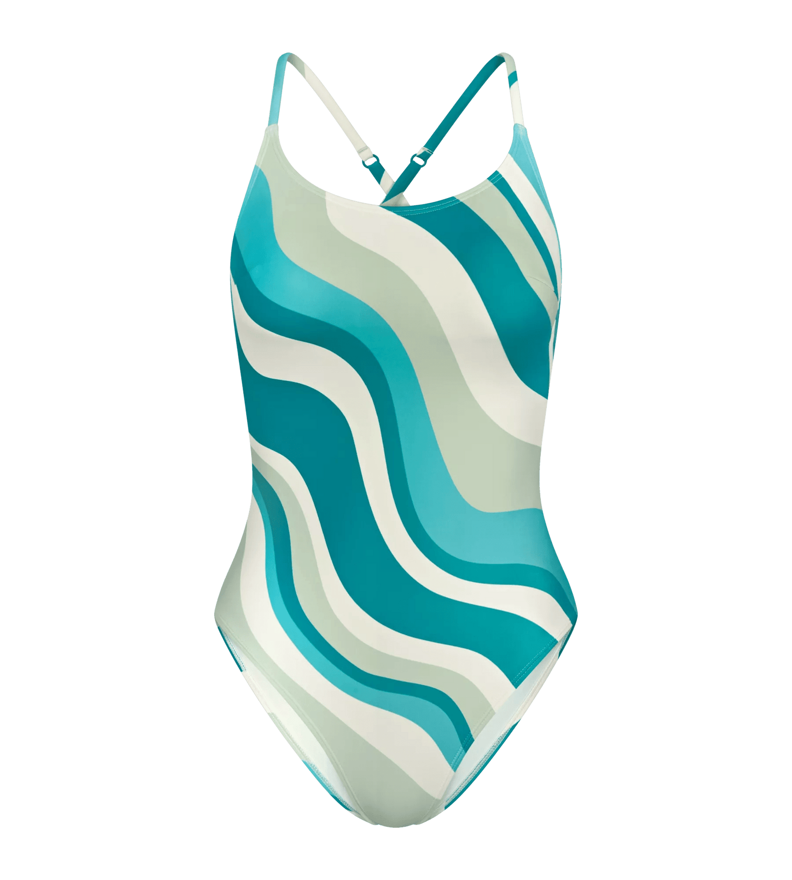 Acest costum de baie cu dublura are un decolteu rotund, modern, si o silueta versatila. Realizat din poliamida partial reciclata, este moale la atingere si durabil.