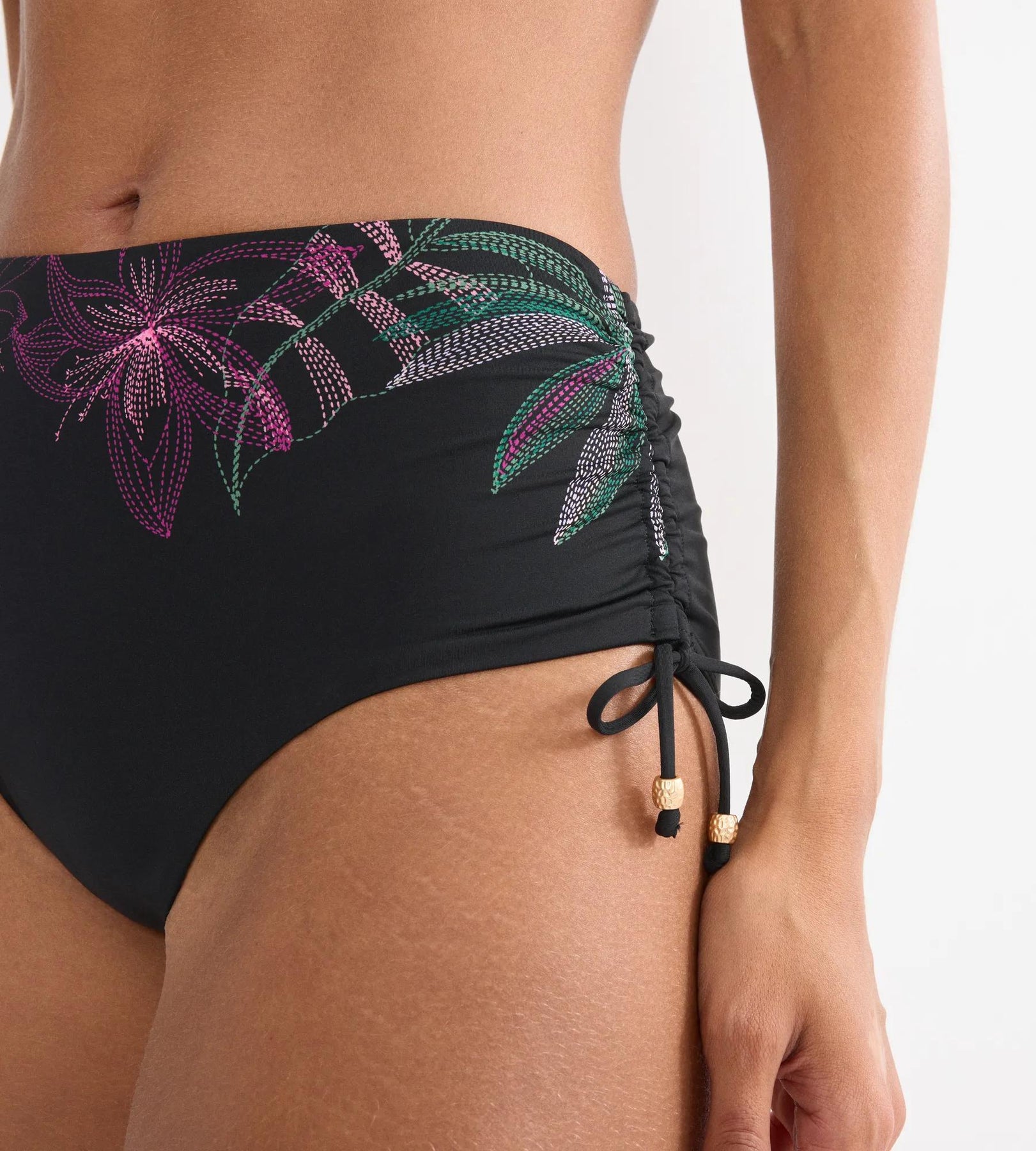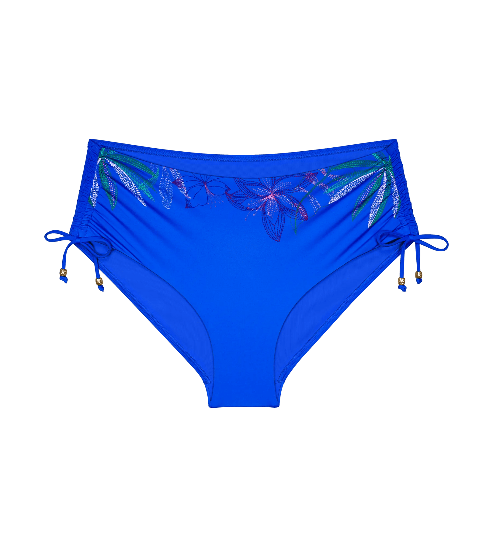 Slip cu acoperire mare, cu laterale reglabile pentru o ajustare mai precisa. Realizat din material modelator certificat GRS, cu 55% poliamida reciclata, ofera sustinere si rezistenta in timp.