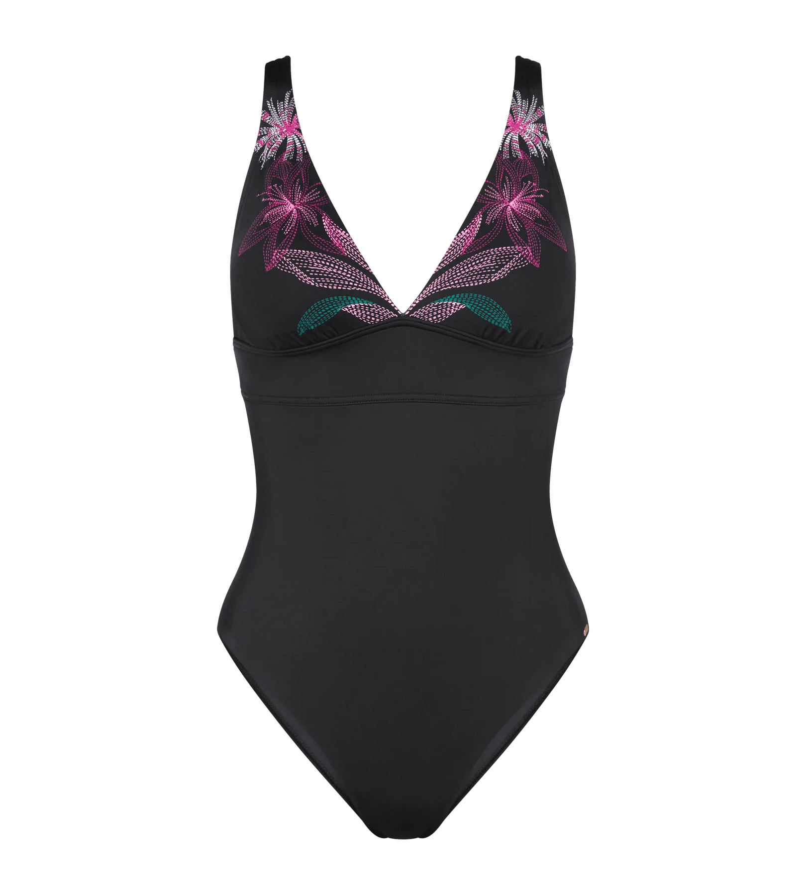 Costum de baie intreg, buretat, cu decolteu adanc tip plunge si bretele reglabile. Banda de sustinere sub bust ofera suport suplimentar, iar croiala inalta pe picior si marginile cu finisaj curat contureaza o silueta moderna. Realizat din material modelator certificat GRS, cu 55% poliamida reciclata, asigura sustinere si rezistenta in timp.