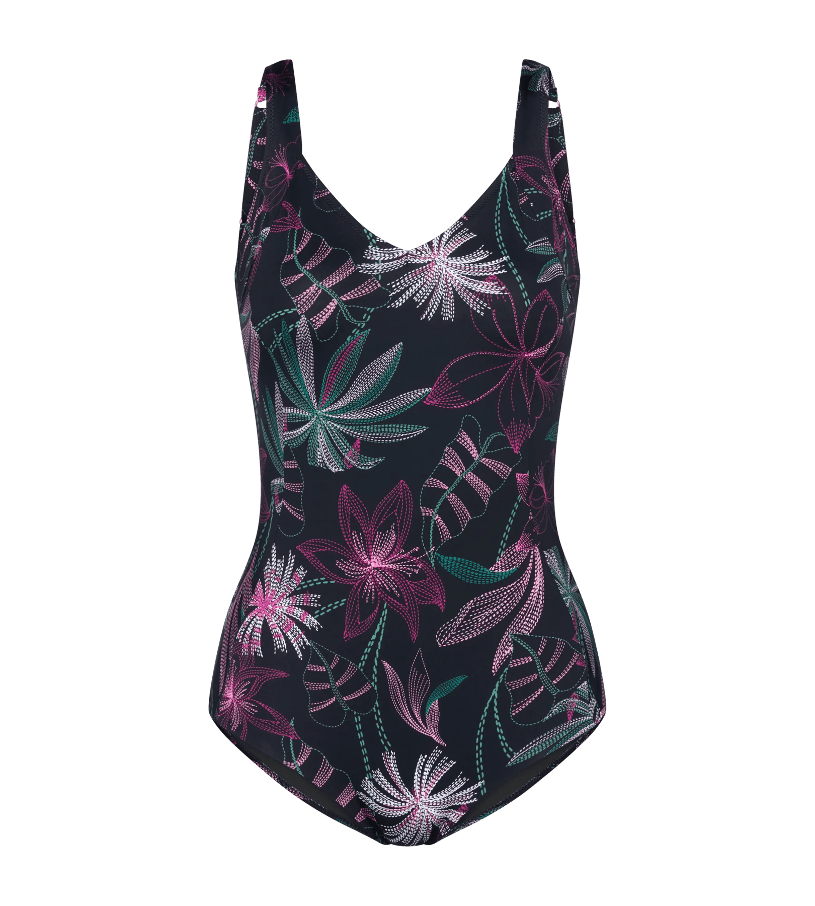 Costum de baie intreg cu armatura, creat pentru un look elegant, cu sustinere si confort ridicat. Cusaturile laterale curbate contureaza silueta si ofera un efect flatant. Realizat din material modelator certificat GRS, cu 55% poliamida reciclata, asigura sustinere si rezistenta in timp.