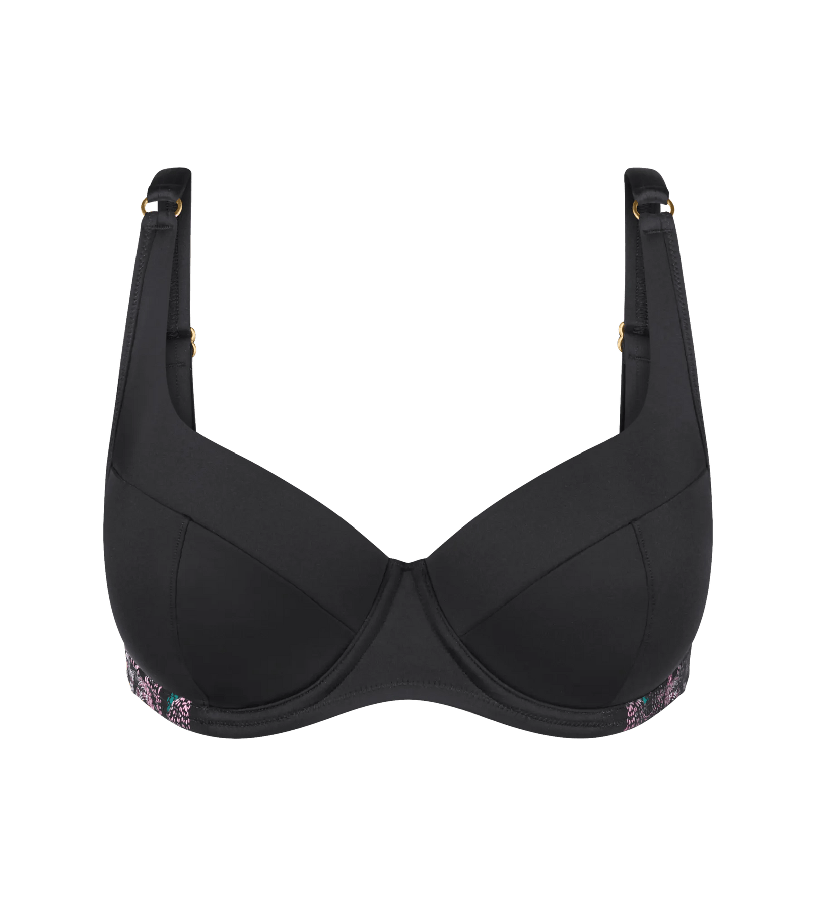 Top de baie cu armatura si cupe buretate, cu decolteu tip inimioara si bretele reglabile. Ofera sustinere sporita datorita cupelor cu power mesh si balenelor laterale. Realizat din material modelator certificat GRS, cu 55% poliamida reciclata, asigura confort si rezistenta in timp.
