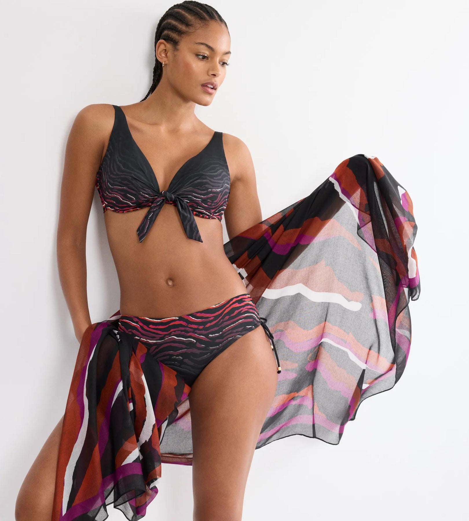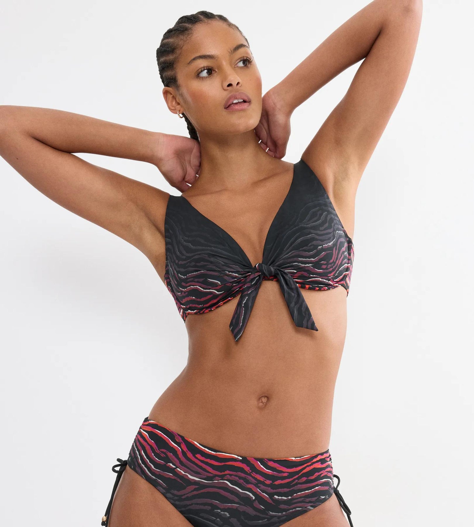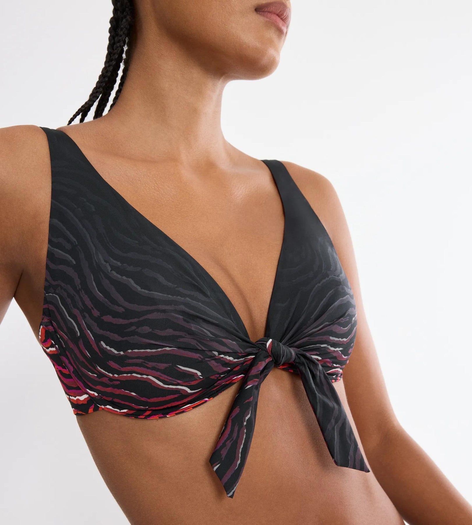 Top de baie cu armatura, cu decolteu adanc tip plunge si detaliu central cu nod pentru un efect flatant. Realizat din material modelator certificat GRS, cu 55% poliamida reciclata, ofera sustinere si rezistenta in timp.